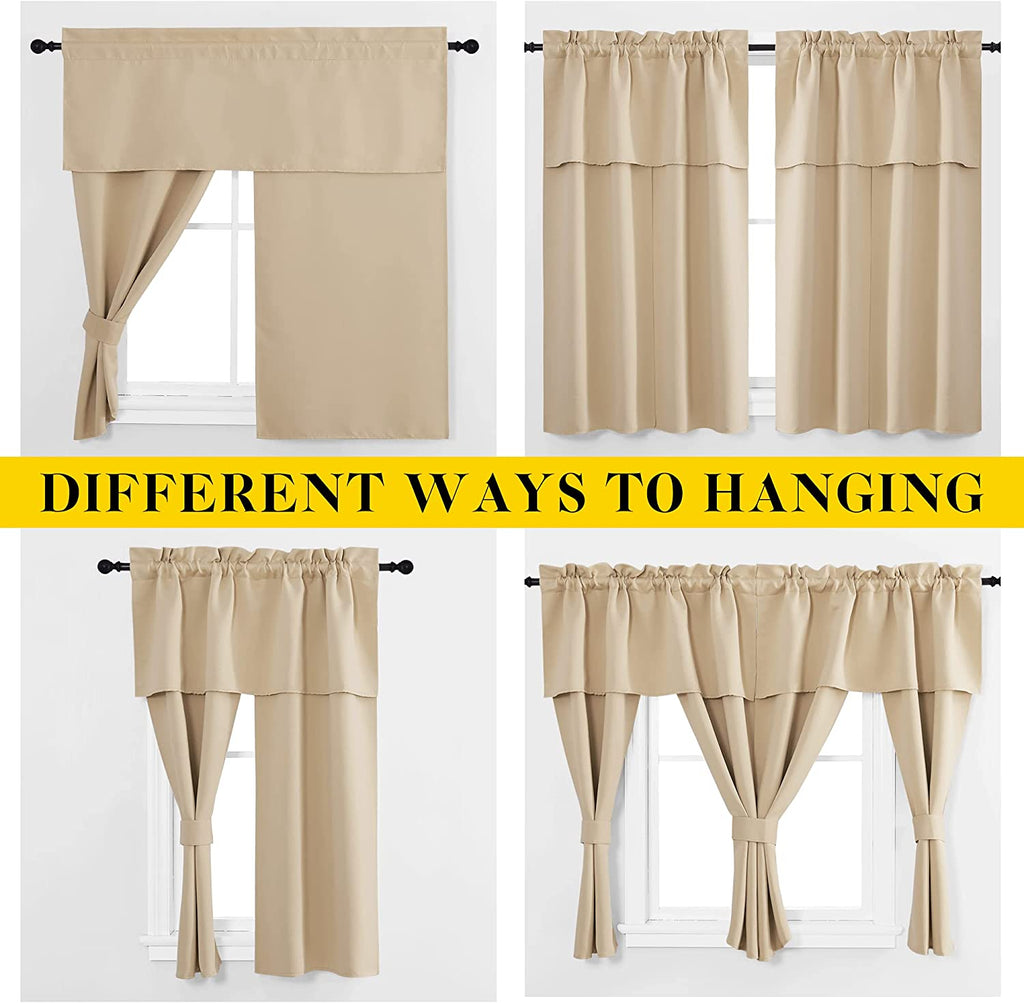- LENGTH ADJUSTABLE: Don't worry if this blackout curtains are a few shorter than your windows. You can hang this curtain panels with rings and hooks. That could be adjustable for height max 3 inches. Hooks space distance around 4-6 inches.